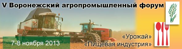 7-8 ноября 2013 г. в Воронеже откроет двери V Агропромышленный форум – крупнейшее отраслевое мероприятие в Черноземье. В рамках проекта будут работать межрегиональные специализированные выставки «Пищевая индустрия» и «Урожай».